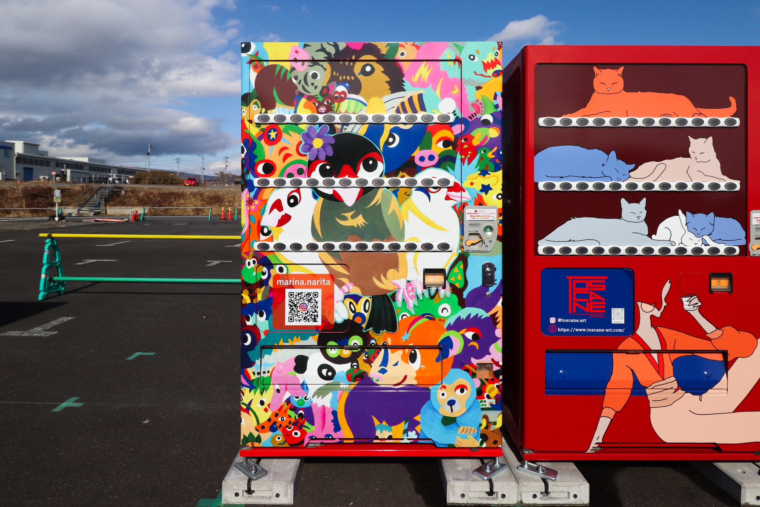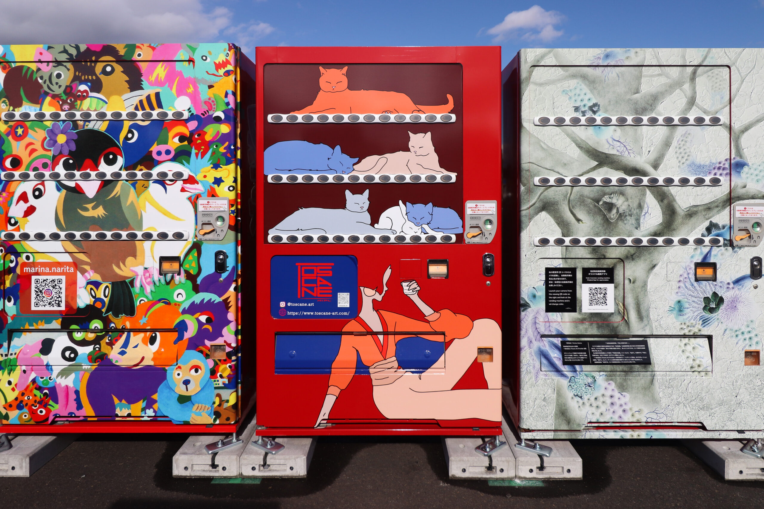 66台のラッピング自販機が並ぶ壮大なアート空間です。