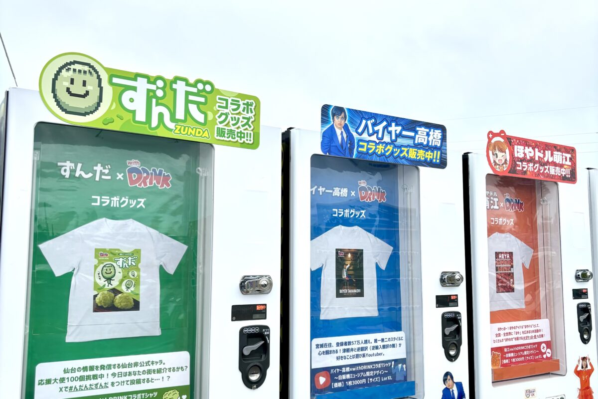 自販機ミュージアム(栗原市)にて 宮城~全国で活躍する皆さまとの コラボグッズを販売開始いたしました🌈 【コラボ商品ラインナップ🌈】 ・Cha’R さん ・POEM さん ・ずんだ さん ・バイヤー高橋 さ … 続きを読む コラボTシャツ販売中!🌈in自販機ミュージアム(栗原市)