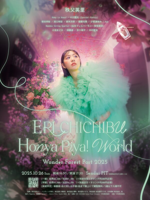 - 2025/09/22ニュース【ご案内】仙台出身音楽家 秩父英里さんのライブ「ERI CHICHIBU Honya Piya! World〜Wonder Forest Port 2025〜」を応援しています!