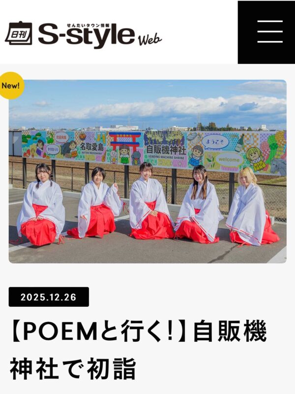 2025/12/27ニュース【掲載のお知らせ】 「せんだいタウン情報誌S-style 1月号」POEMと行く!自販機神社初詣🌸 -